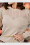 - Esnek yapısı sayesinde rahat hareket etme özgürlüğü sunar ve vücut hatlarınıza mükemmel uyum sağlar.; - İnce dokusuyla hafif ve konforlu bir kullanım deneyimi yaşatır, sıcak tutarken cildinizi rahatsız etmez.; - Dantel detayları ile feminen bir dokunuş katarken, şıklığınızı ön plana çıkarır.; - Young koleksiyonunun dinamik ve genç ruhunu yansıtan tasarımıyla gençlerin enerjisini yansıtır.; - Organik materyaller kullanılarak üretilmiş olup, sürdürülebilir moda anlayışını benimseyenler için idealdir.; - Extra yumuşak yapısıyla gün boyu konforlu bir deneyim sunar; cilt dostu dokusuyla teninizde rahatlık hissi verir.; - Kemersiz tasarımı sayesinde ekstra rahatlık sağlar ve farklı aksesuarlarla kolayca kombinlenebilir.; - Standart boyu ile her türlü vücut tipine uygunluk gösterir ve uzun kol kesimiyle mevsim geçişlerinde ideal koruma sunar.; - Slim fit kalıbı sayesinde modern ve şık bir siluet çizerken, vücut hatlarınıza mükemmel uyum sağlar.; - Triko kumaşı dayanıklılığı arttırarak uzun süreli kullanım imkanı tanır; kolay bakım avantajlarıyla da öne çıkar.; - Yetişkin kadınların gardrobunda yerini alacak bu parça, her yaş grubuna hitap eden geniş bir kullanıcı kitlesine sahiptir.; - Uzun kol tipi ile mevsimsel geçişlerde ideal koruma sağlarken bisiklet yakası günlük kullanım için pratiklik sunar.; - Dantel/güpür deseniyle zarif detaylar ekleyerek stilinize sofistike bir hava katar.