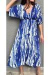 - Volanlı kol tasarımı ile feminen bir görünüm sunar ve hareket özgürlüğü sağlar; - Beli lastikli yapısı sayesinde rahat bir kullanım imkanı tanır ve vücut hatlarını nazikçe sarar; - Kısa kollu tasarımı, sıcak havalarda serinlik ve konfor sunarken şık bir görünüm kazandırır; - Dijital baskı tekniği ile üretilen desen, canlı ve net renklerle göz alıcı bir stil oluşturur; - Young koleksiyonunun dinamik ruhunu yansıtan bu elbise, genç ve modern tarzını ön plana çıkarır; - Desenli yapısıyla dikkat çekici bir detay eklerken, düz kesimiyle de sade şıklığı korur; - Yırtmaç detayı ile hem rahatlık hem de stil sahibi bir görünüm sağlar; hareket halindeyken bile zarif duruşunu korur; - Tüm yaş gruplarına hitap eden tasarımıyla geniş bir kullanıcı yelpazesine sahiptir.; - V yaka kes;