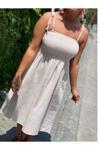 Zarif drapeli detaylarıyla göz alıcı bir görünüm sunan bu midi elbise, hem gündüz hem de gece şıklığınızı tamamlar.; Keten kumaşı sayesinde hafif ve nefes alabilen yapısı ile yaz ayları için idealdir.; Dar kesimiyle feminen siluetinizi ön plana çıkarırken, askılı tasarımı omuzlarınızı rahatça sergiler.; Straplez yaka tipiyle cesur ve modern bir görünüm kazandırırken, bağcıklı kapama şekli kişisel zevkinize göre ayarlamanıza olanak tanır.; Düz deseni ve orta kalınlığa sahip dokumasıyla her türden aksesuarla kolayca kombinlenebilir; Young koleksiyonunun dinamik ruhunu yansıtır.;