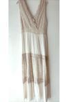 Kadın Kolsuz Güpür Elbise: İtalyan stil, içi astarlı viskon-pamuk, dış tarafı Üst kısmı arkalı ve önlü V yaka, tamamen güpür, etek kısmı volanlı tül ve güpür işlemelidir; beli dantel detaylı ve arkadan lastikli ve esnektir, kaliteli üründür, astarlı fakat ürünümüz güpürlü ve dekolte özelliklerinden iç gösterebilir, ince ve son derece yumuşak bir kumaşa sahiptir Boy: 133 cm / En: 42 cm / Göğüs çevresi: 84 cm Stüdyo çekimlerinde renklerde ton farklılğı oluşabilir