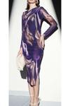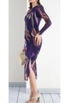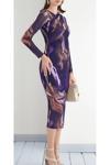 Büzgü ve drape detaylarıyla modern ve şık bir görünüm sunan midi boy elbise.