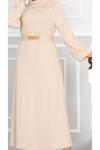 Ürün mevsimliktir astarsızdır. Kol manşetleri lastikli olup beli kuşaklıdır, kuşak detayında ise zincir vardır. Yakası boğazlı, rahat tesettür elbise modelidir. ; Uzunluk: 134 ; Kumaş Özelliği:Pamuklu Bürümcük kumaştan imal edilmiştir. ; Ürün tam kalıp olduğundan normalde kullandığınız bedeni sipariş vermeniz tavsiye edilir. ; Manken Ölçüleri: Beden 38 / Boy 1.68cm / Basen 90cm / Bel 77cm / Göğüs 90cm ; Yıkama Talimatı: 30° (En Düşük Derece) ile tersten yıkama yapılmalıdır. ; Ürün renginde çekimlerinden dolayı ton farklılığı olabilir. ;