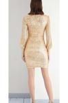 Zarif ve şık tasarımıyla dikkat çeken bu mini elbise, slim fit kesimi sayesinde vücut hatlarınıza mükemmel uyum sağlar; Parti ve özel davetlerde göz alıcı bir görünüm sunan bu elbise, pul payet detaylarıyla ışıltınızı ön plana çıkarır; Mini boyu ile feminen ve dinamik bir stil yaratırken, V yaka tasarımı dekolte bölgenizi zarifçe vurgular; Uzun kolları sayesinde mevsim geçişlerinde de rahatlıkla tercih edebileceğiniz bu elbise, tüm yaş gruplarına hitap eder; Polyester materyali sayesinde dayanıklılık ve konforu bir arada sunarken, orta kalınlığıyla mevsim geçişlerinde ideal bir seçimdir; Dokuma kumaşı, ürünün formunu korumasına yardımcı olurken parıltılı detaylarıyla göz alıcı bir etki yaratır; İç göstermeyen yapısıyla rahatlık ve şıklığı bir arada sunan bu elbise, fermuarlı kapama şekliyle pratik kullanım imkanı sağlar;