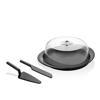 Modern mutfakların vazgeçilmezi olan bu şık kek fanusu ve servis seti, zarif mat siyah tasarımıyla sofralarınıza stil katar. Şeffaf kubbe kapağı sayesinde keklerinizi taze tutarken, sunumlarınıza da profesyonel bir görünüm kazandırır. Ev davetleri, doğum günü kutlamaları ve çay saatleri için idealdir.