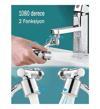 AKROBAT MUSLUK BAŞLIĞI Her Köşeye Ulaşan Temizlik, 1080° Çok Yönlü Döndürme ile 1080° çok yönlü döndürme robotik kol tasarımı, su akışının lavabonun her köşesine ulaşmasını sağlayan toplam üç adet 360° dönüş arayüzüne sahiptir. Musluk havalandırıcı, iki su çıkış modu arasında geçiş yapabilme özelliği ile sıçramadan yumuşak kabarcık akışı elleri yıkamak için idealdir ve basınçlı sprey ise bardakları durulamak için uygundur.