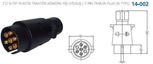 7'Lİ N TİPİ PLASTİK TRAKTÖR RÖMORK ERKEK (VİDALI)