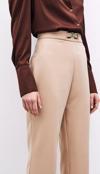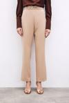 Yüksek bel, yan fermuarlı kapama, düz paça, bel aksesuar detaylı pantolon.