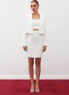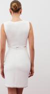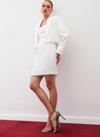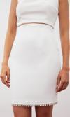 Yüksek bel, arka fermuarlı, aksesuarlı kısa etek.