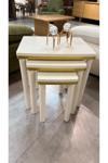 Ürünün üst tablaları 1.Kalite Çift MDFLAM malzemeden üretilmiştir ve dayanıklılığı, uzun ömürlü kullanımı ile dikkat çeker. Kenarları GOLD LAKE boyadır. KULLANDIĞIMIZ BOYA EN71-3 AVRUPA BİRLİĞİ STANDARDINA UYGUNDUR. (EN71-3 VÜCUDA GİRDİKTEN SONRA ATILAMAYAN, ARSENİK, ANTİMON, BARYUM, KADMİYUM, KROM, KURŞUN, CİVA, SELENYUM GİBİ AĞIR METALLERE SINIRLAMA GETİREN BİR AVRUPA BİRLİĞİ STANDARDIDIR.) Bohem ayaklar GÜRGEN ağacından üretilmiştir. Bohem ayaklar kendi atölyemizde ÖZEL LAKE olarak imal edilmiştir. Ayakların altında zemine zarar vermesin diye ayak keçeleri bulunmaktadır. Bu sayede sehpalar ses yapmaz. ÖLÇÜLERİ AŞAĞIDAKİ GİBİDİR