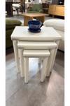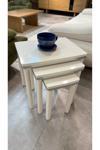 Ürünün üst tablaları 1.Kalite Çift MDFLAM malzemeden üretilmiştir ve dayanıklılığı, uzun ömürlü kullanımı ile dikkat çeker. Kenarları GÜMÜŞ LAKE boyadır. KULLANDIĞIMIZ BOYA EN71-3 AVRUPA BİRLİĞİ STANDARDINA UYGUNDUR. (EN71-3 VÜCUDA GİRDİKTEN SONRA ATILAMAYAN, ARSENİK, ANTİMON, BARYUM, KADMİYUM, KROM, KURŞUN, CİVA, SELENYUM GİBİ AĞIR METALLERE SINIRLAMA GETİREN BİR AVRUPA BİRLİĞİ STANDARDIDIR.) Bohem ayaklar GÜRGEN ağacından üretilmiştir. Bohem ayaklar kendi atölyemizde ÖZEL LAKE olarak imal edilmiştir. Ayakların altında zemine zarar vermesin diye ayak keçeleri bulunmaktadır. Bu sayede sehpalar ses yapmaz. ÖLÇÜLERİ AŞAĞIDAKİ GİBİDİR