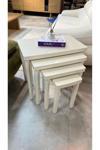 Ürünün üst tablaları 1.Kalite Çift MDFLAM malzemeden üretilmiştir ve dayanıklılığı, uzun ömürlü kullanımı ile dikkat çeker. Kenarları KREM LAKE boyadır. KULLANDIĞIMIZ BOYA EN71_3 AVRUPA BİRLİĞİ STANDARDINA UYGUNDUR. (EN71-3 VÜCUDA GİRDİKTEN SONRA ATILAMAYAN, ARSENİK, ANTİMON, BARYUM, KADMİYUM, KROM, KURŞUN, CİVA, SELENYUM GİBİ AĞIR METALLERE SINIRLAMA GETİREN BİR AVURUPA BİRLİĞİ STANDARDIDIR. ) Bohem ayaklar GÜRGEN ağacından üretilmiştir. Bohem ayaklar kendi atölyemizde ÖZEL KREM LAKE olarak imal edilmiştir. ÖLÇÜLERİ AŞAĞIDAKİ GİBİDİR