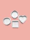 Bu set, kurabiye ve şeker hamuru yapımında kullanabileceğiniz dört farklı kalp desenli çerçeve içerir.