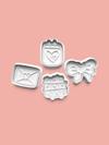 Bu set, dört farklı kalıptan oluşur ve her biri sevgililer günü temasına uygun şekiller sunar.