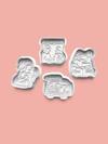 Bu 4'lü set, farklı şekillerdeki kalıplarıyla hem kurabiye hem de şeker hamuru yapımında kullanılabilir.