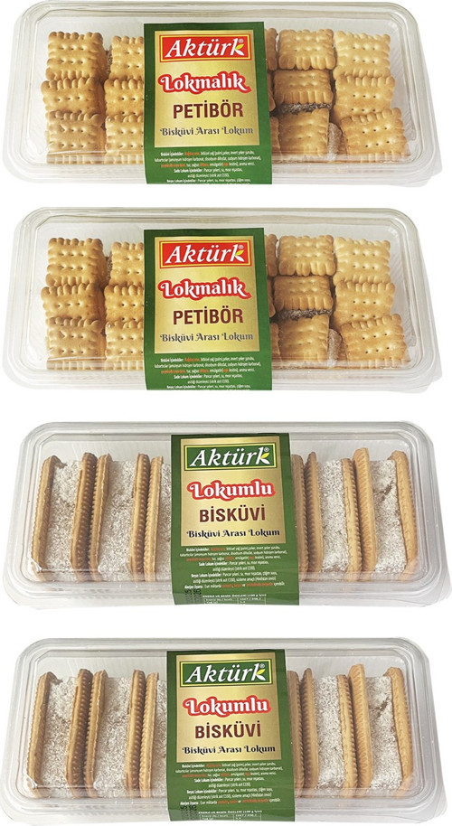 Aktürk Lokumlu Bisküvi 300 gr ve Lokmalık Petibör 250 gr 4 lü Karma Paket (2' şer Adet)