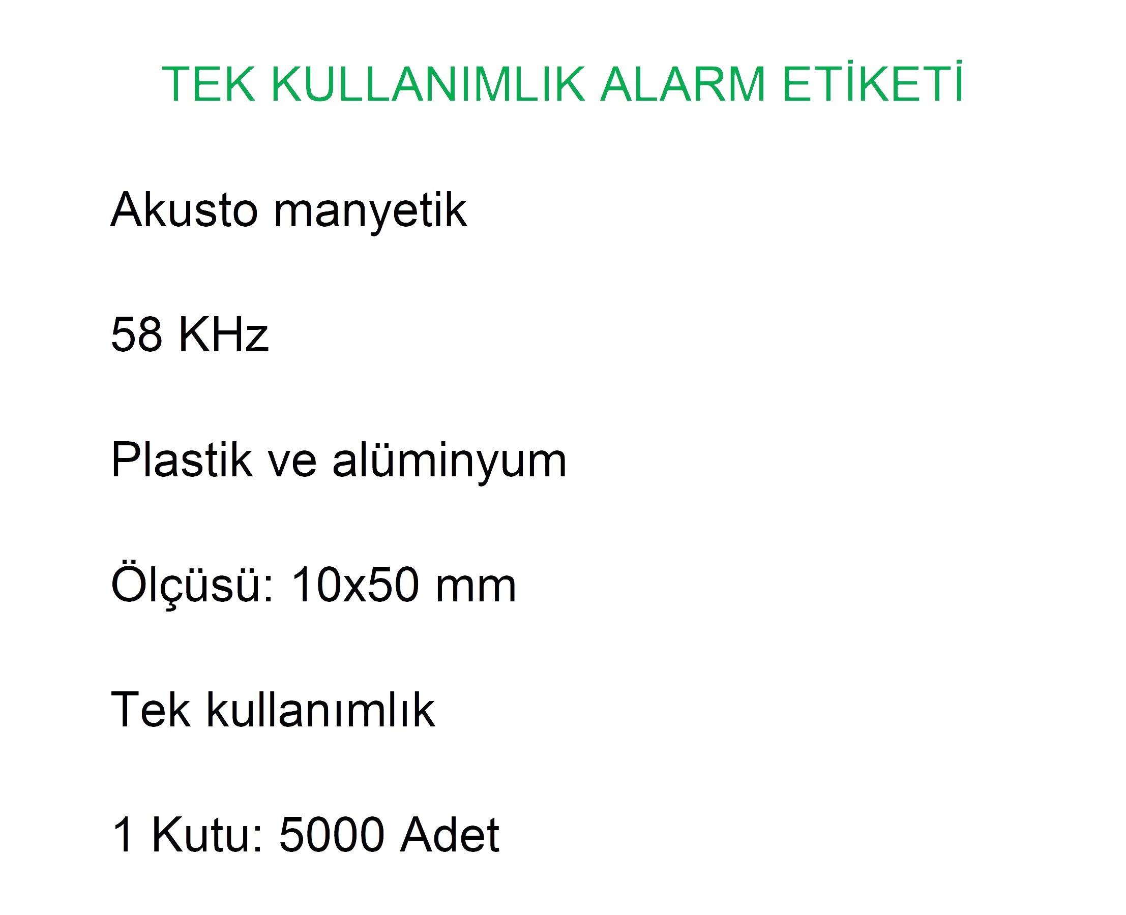 Secadoor 10x50 mm akusto manyetik plastik alarm etiketi; ABS plastik, özel akusto manyetik devre birleşiminden üretilmiştir. 58 KHz akusto manyetik frekansı üretmektedir. Direk ürün üzerine yapıştırılarak kullanılır. Dikdörtgen şeklinde yapıda olup üzeri barkod baskılı olarak sizlere sunulmuştur. Akusto manyetik etiket öldürücü deaktivatör üzerinde tutularak pasivize edilir. Tekstil, oyuncak, aksesuar, hırdavat, market, kozmetik vb. mağazalar için oldukça uygundur. Sizde ürünlerinizi korumak istiyorsanız, plastik alarm etiketini ürünlerinizin üzerinde gönül rahatlığıyla uygulayabilirsiniz.