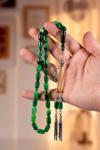 Alacalı Yeşil Kapsül Tane Yumuşak Çekimli Sıkma Kehribar Tesbih, Tesbihimizin hamuru yumuşak cinse sahiptir.