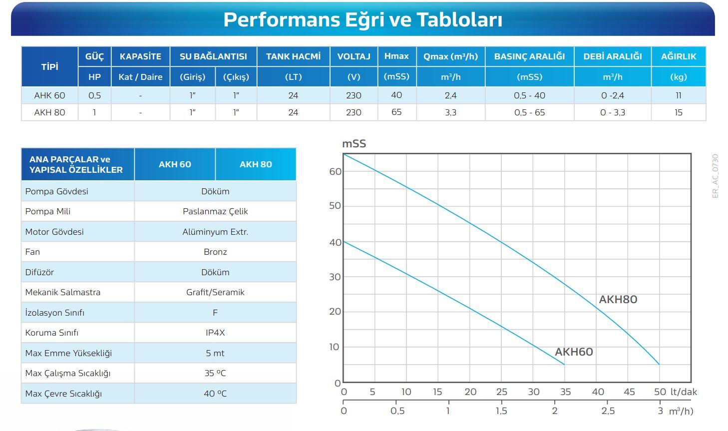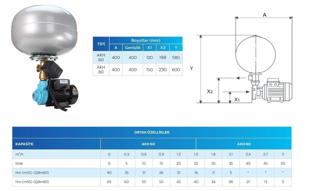 - Bronz fanlı, grafit/seramik salmastralı üstün hidrofor pompasına sahip.