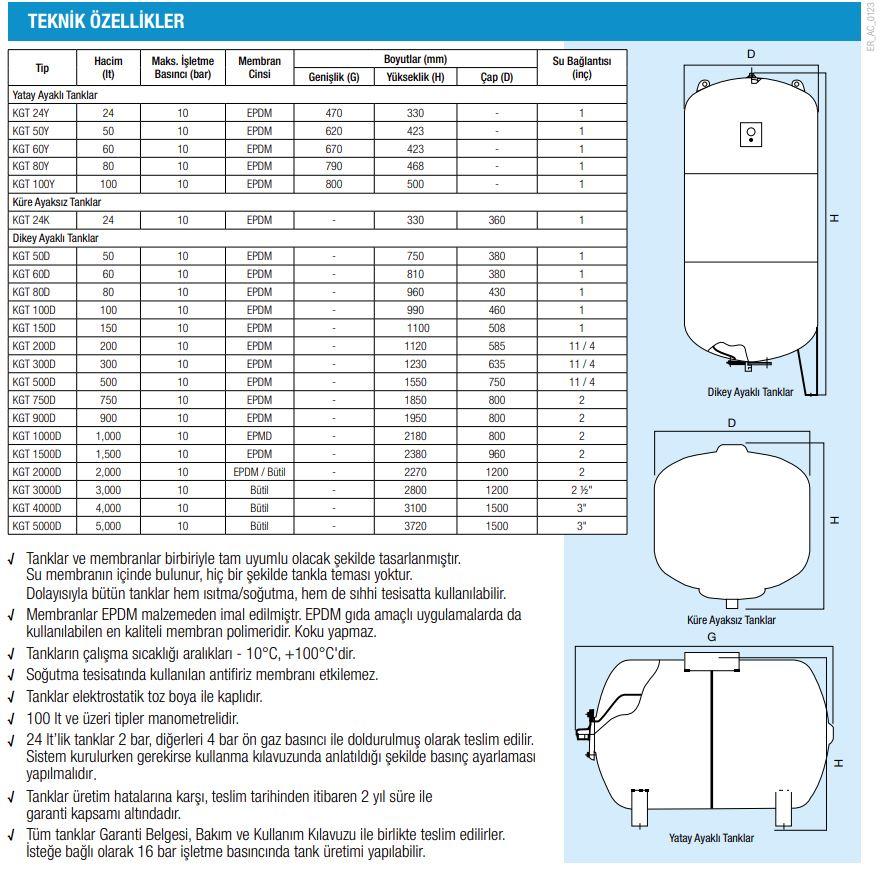 - Tanklar ve membranlar birbiriyle tam uyumlu olacak şekilde tasarlanmıştır. Su membranın içinde bulunur, hiç bir şekilde tankla teması yoktur. Dolayısıyla bütün tanklar hem ısıtma/soğutma, hem de sıhhi tesisatta kullanılabilir.