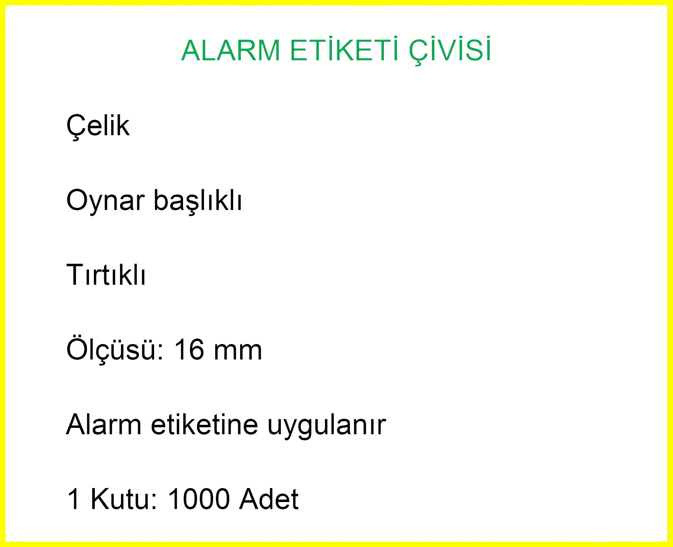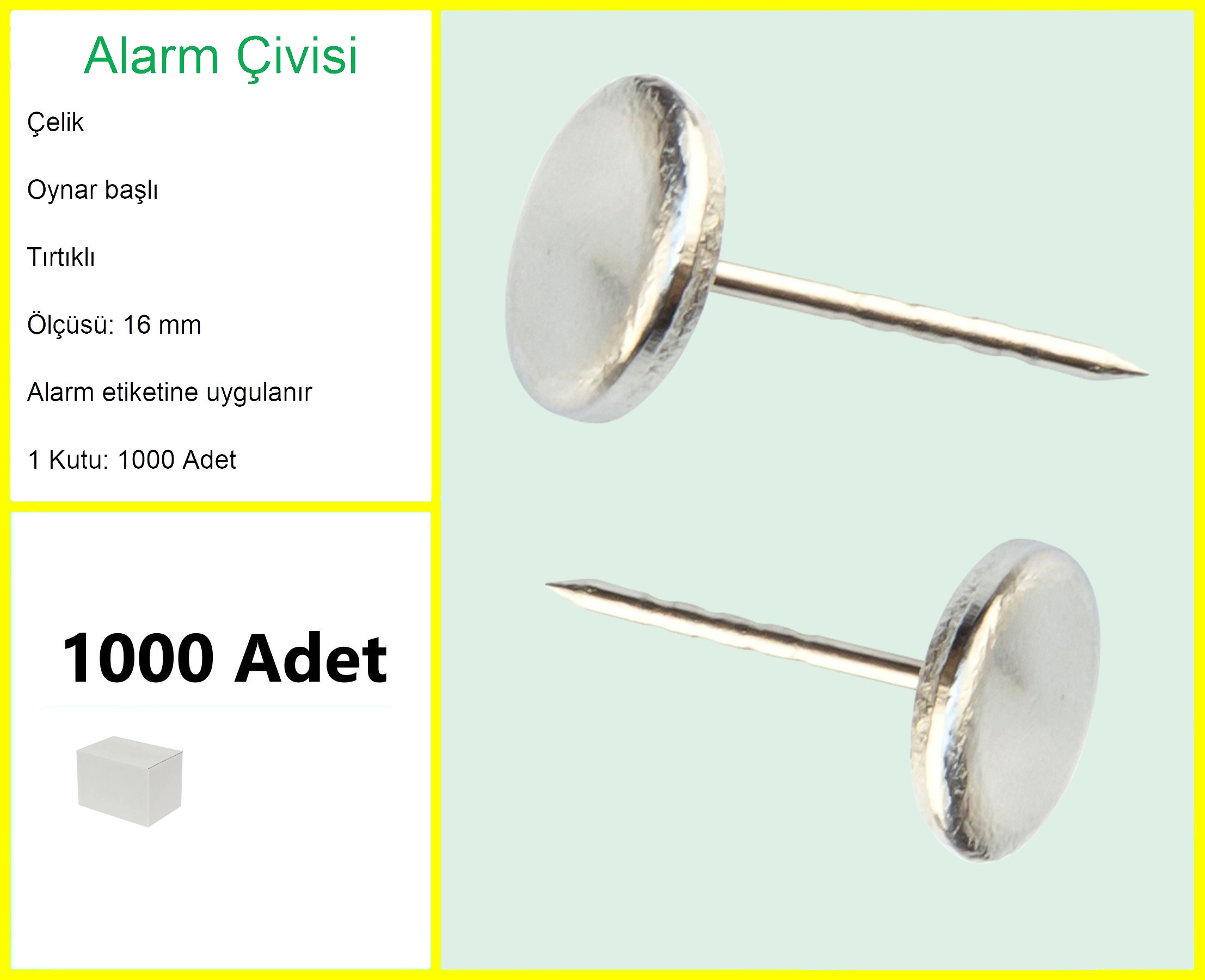 Alarm Etiketi Çivisi Metal Başlı 1000'li Kutu