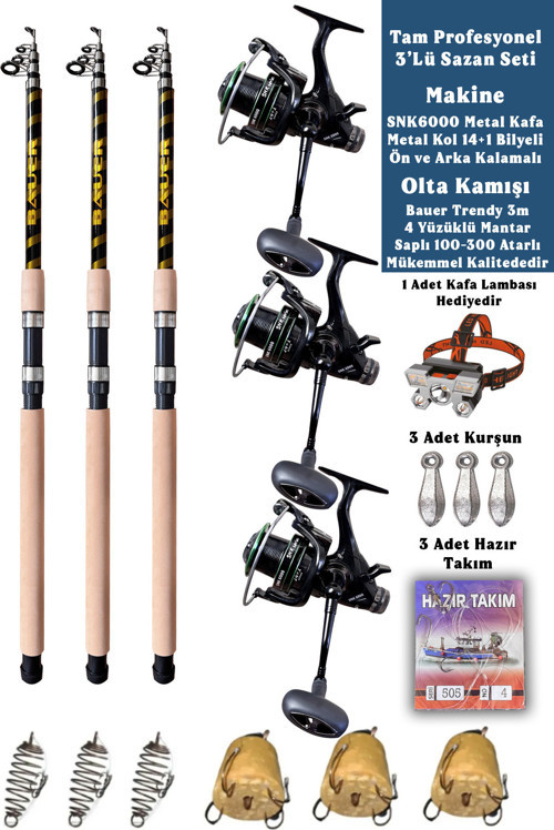 3 Adet Profesyonel SNK 6000 Olta Makinesi 14+1 Bilyelidir. Metal Kafa Metal Gövde Metal Kolludur. Ayrıca Ön ve Arkadan Kalamalıdır.