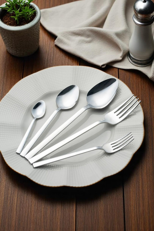 30 Parça Paslanmaz Çelik Çatal Kaşık Seti – | Çay, Tatlı ve Yemek Seti | Çubuk Model