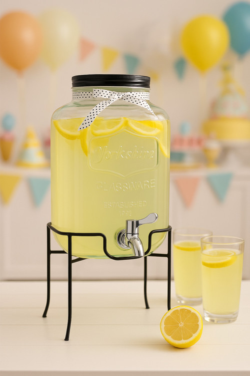 Albergio'nun şık ve kullanışlı cam sebili, içeceklerinizi estetik bir şekilde sunmanız için ideal bir seçenektir.