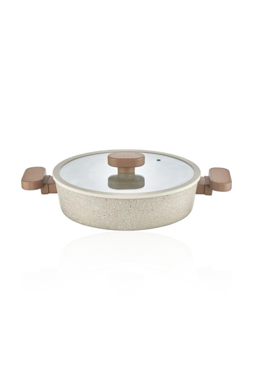 Albetto İmza Granit Ezme Basık Tencere Vizon 22cm Silikon Kenarlı Kapak