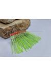Sim kombinin de fıstık yeşil organze, balık sırtı sim ve mor beyaz sim kullanılmıştır.