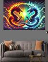 Alevler İçinde Ejderha Dekoratif Kanvas - Mdf Ahşap Tablo