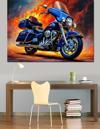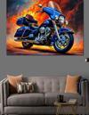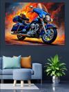 Alevli Hızlı Mavi Motosiklet Dekoratif Kanvas - Mdf Ahşap Tablo