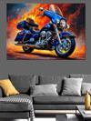 Karizmart Alevli Hızlı Mavi Motosiklet Dekoratif Kanvas - Mdf Ahşap Tablo
