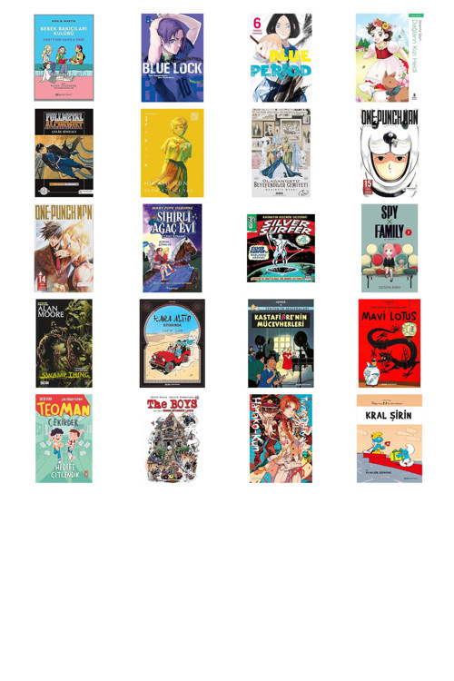 Bebek Bakıcıları Kulübü - Kristy’nin Harika Fikri - Blue Lock Cilt 8 - Blue Period 6. Cilt - Dağların Kızı Heidi - Çizgi Roman - Fullmetal Alchemist - Çelik Simyacı 23 - Hikaru’nun Veda Ettiği Yaz 3 - Olağanüstü Beyefendiler Cemiyeti - Cilt: 1 - One-Punch Man - Cilt 15 - One-Punch Man - Tek Yumruk 14 - Sihirli Ağaç Evi 2: Gizemli Şövalye (Çizgi Roman) - Silver Surfer Cilt 1 - Silver Surfer'in Başlangıç Hikayesi - Spy x Family 2 - Swamp Thing Efsanesi: 2. Cilt - Tenten'in Maceraları 15 - Kara Altın Diyarında - Tenten'in Maceraları 21 - Kastafiore'nin Mücevherleri - Tenten'in Maceraları 5 - Mavi Lotus - Teoman Çekirdek - Hedefe Çitlendik - The Boys 4: Hemen Gitmemiz Lazım - Tuvalet Hayaleti Hanako-Kun 6. Cilt - Şirinler 2 - Kral Şirin: ve Do Majör Şirinfoni