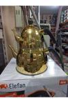 Vıcalına Paslanmaz Çelik Gold Çaydanlık Takımı - Üst 1l / Alt 2.5l - Ergonomik Siyah Saplı