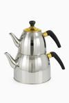 Alfagift Vıcalına Paslanmaz Çelik Ikili Çaydanlık Takımı – 1 Lt & 2.5 Lt – Altın Kapaklı, Siyah Saplı