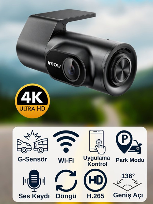 Imou Dashcam T800, ultra kompakt bir gövdede gelişmiş teknoloji sunar. 1/2.9" CMOS sensörle donatılan kamera, 4K görüntü kalitesinde net detaylar üretirken ultra geniş açılı objektif daha kapsamlı bir görüş sağlar. F2.0 diyafram ve Starlight gece modu, düşük ışık koşullarında bile daha berrak kayıt alınmasına yardımcı olur.