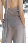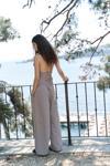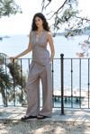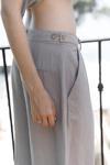 Pilili, cepli, geniş paça, keten karışımlı, rahat formda pantolon.