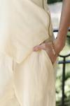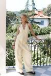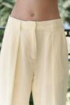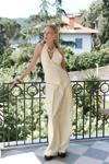 Pilili, cepli, geniş paça, keten karışımlı, rahat formda pantolon.