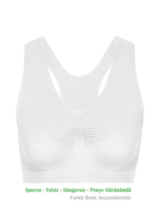 - Alışveriş Meydanı Kadın Beyaz Pedsiz Likralı Sporcu Sütyeni Büstiyeri - Toparlayıcı Sütyen - ALIS0001003