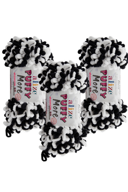Alize Puffy More El Örgü İpliği 3 Adet – 6632 Siyah Beyaz – Taraftar Renkleri – Battaniye, Atkı, Yelek