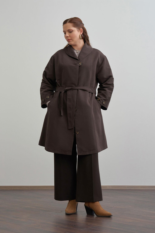 Şıklığı detaylarda arayanlara özel Acı Kahve-Şal Yaka Trençkot ile zarif bir görünüm yakalayın. Günlük ve özel kombinler için ideal tasarım ALLDAY’de!