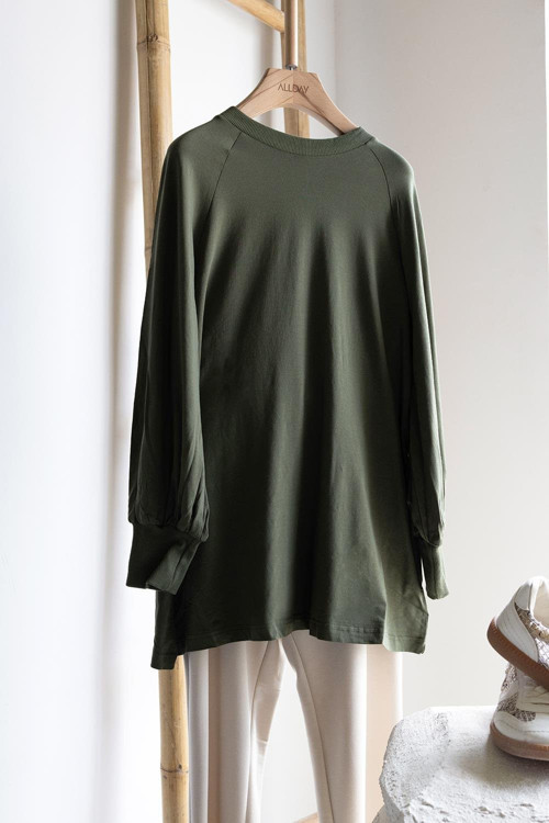 Şıklığı detaylarda arayanlara özel Haki-Pamuklu Bisiklet Yaka Kolları Büzgülü Uzun Kollu Likralı T-Shirt ile zarif bir görünüm yakalayın. Günlük ve özel kombinler için ideal tasarım ALDAY’de!