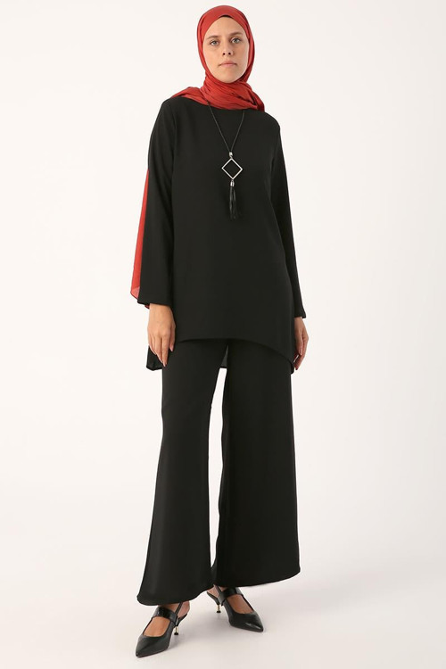 Siyah-Kolyeli Bol Paça Pantolonlu Tunikli Takım ürünü ile modern ve rahat bir tarz yakalayın ALLDAY’in 2 li Takım kategorisindeki diğer modellerini keşfedin. Kombinini tamamlayacak Siyah-Kolyeli Bol Paça Pantolonlu Tunikli Takım için hemen Keşfedin!