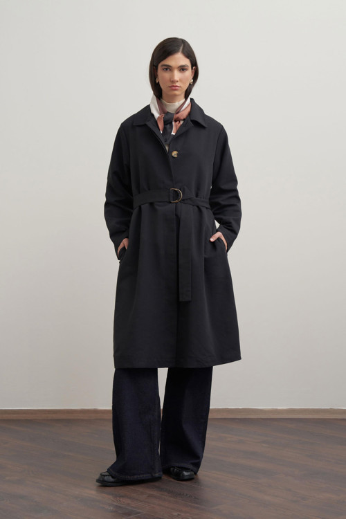 Şıklığı detaylarda arayanlara özel Siyah-Kuşaklı Uzun Trençkot le zarif bir görünüm yakalayın. Günlük ve özel kombinler için ideal tasarım ALLDAY’de!