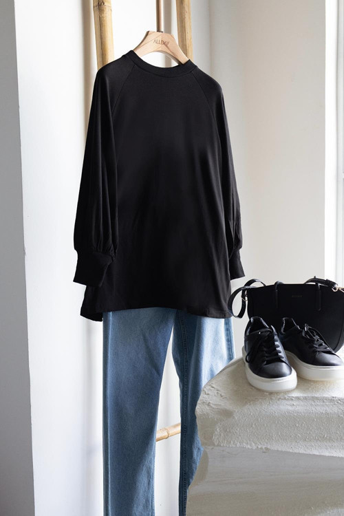 Şıklığı detaylarda arayanlara özel Siyah-Pamuklu Bisiklet Yaka Kolları Büzgülü Uzun Kollu Likralı T-Shirt ile zarif bir görünüm yakalayın. Günlük ve özel kombinler için ideal tasarım ALDAY’de!