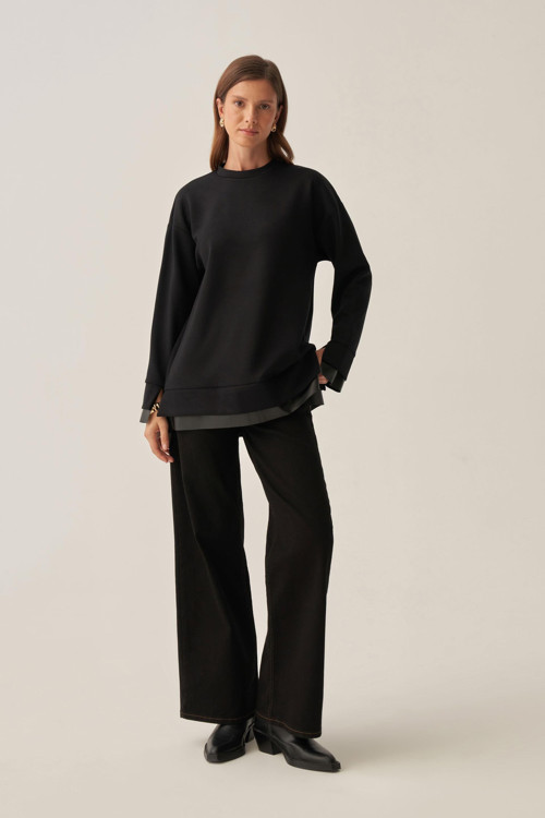 Şıklığı detaylarda arayanlara özel Siyah-Yumuşak Dokulu Deri Garnili Tunik le zarif bir görünüm yakalayın. Günlük ve özel kombinler için ideal tasarım ALLDAY’de!