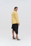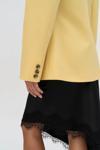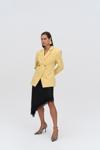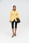 Önü çift düğmeli, belden oturtmalı blazer. Omuzları vatkalı, uzun kollu, manşetleri düğmeli, yalancı cep görünümü. Kruvaze kapama. Astarlı özel dikim.