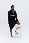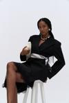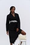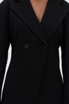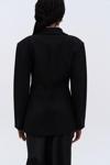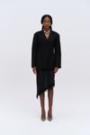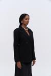 Önü çift düğmeli, belden oturtmalı blazer. Omuzları vatkalı, uzun kollu, manşetleri düğmeli, yalancı cep görünümü. Kruvaze kapama. Astarlı özel dikim.