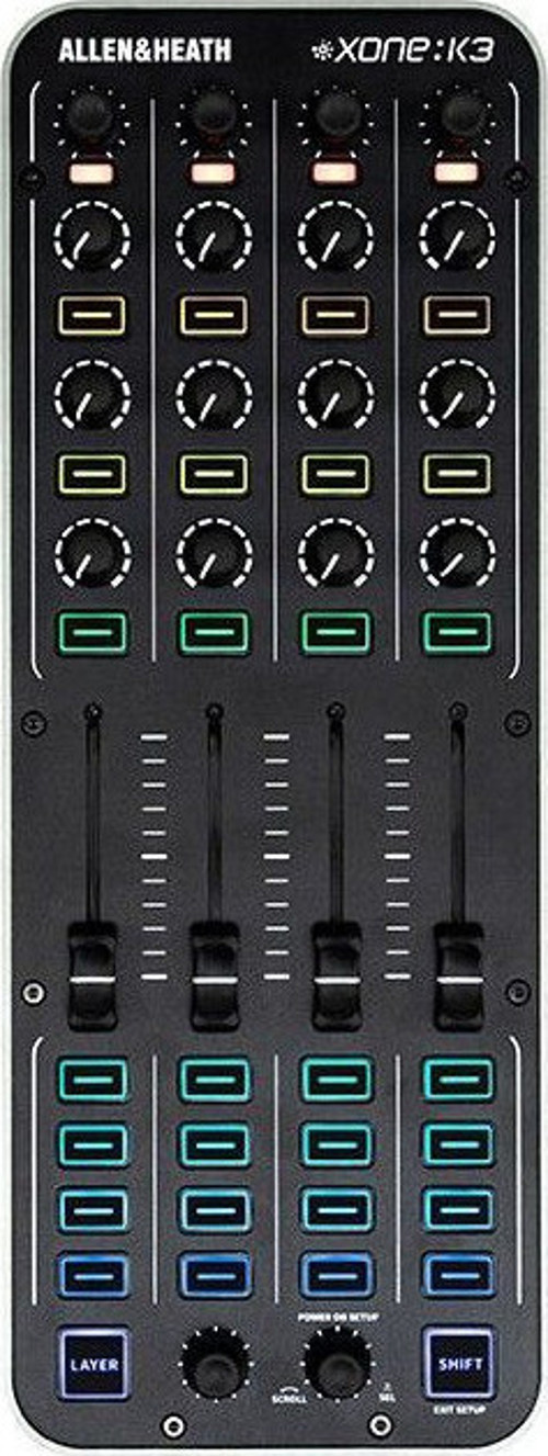 Xone:K3, Allen & Heath'in ünlü Xone serisinin en yeni üyesidir. Profesyonel kalite standartlarında üretilen bu MIDI kontrolcü, hem canlı performanslarda hem de stüdyo çalışmalarında mükemmel bir araçtır. 30 adet dokunsal düğme, hassas kontroller için 12 adet döner potans ve dinamik ayarlamalar için 6 adet basmalı sonsuz encoder ile donatılmıştır.