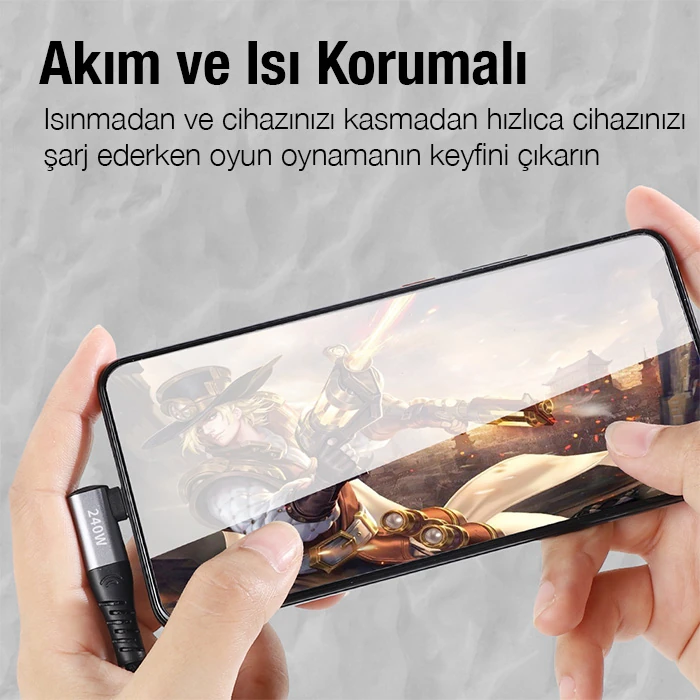 Ally 240W şarj kablosu type-c arayüzlü cihazlar için hızlı şarj deneyimi yaşatır.